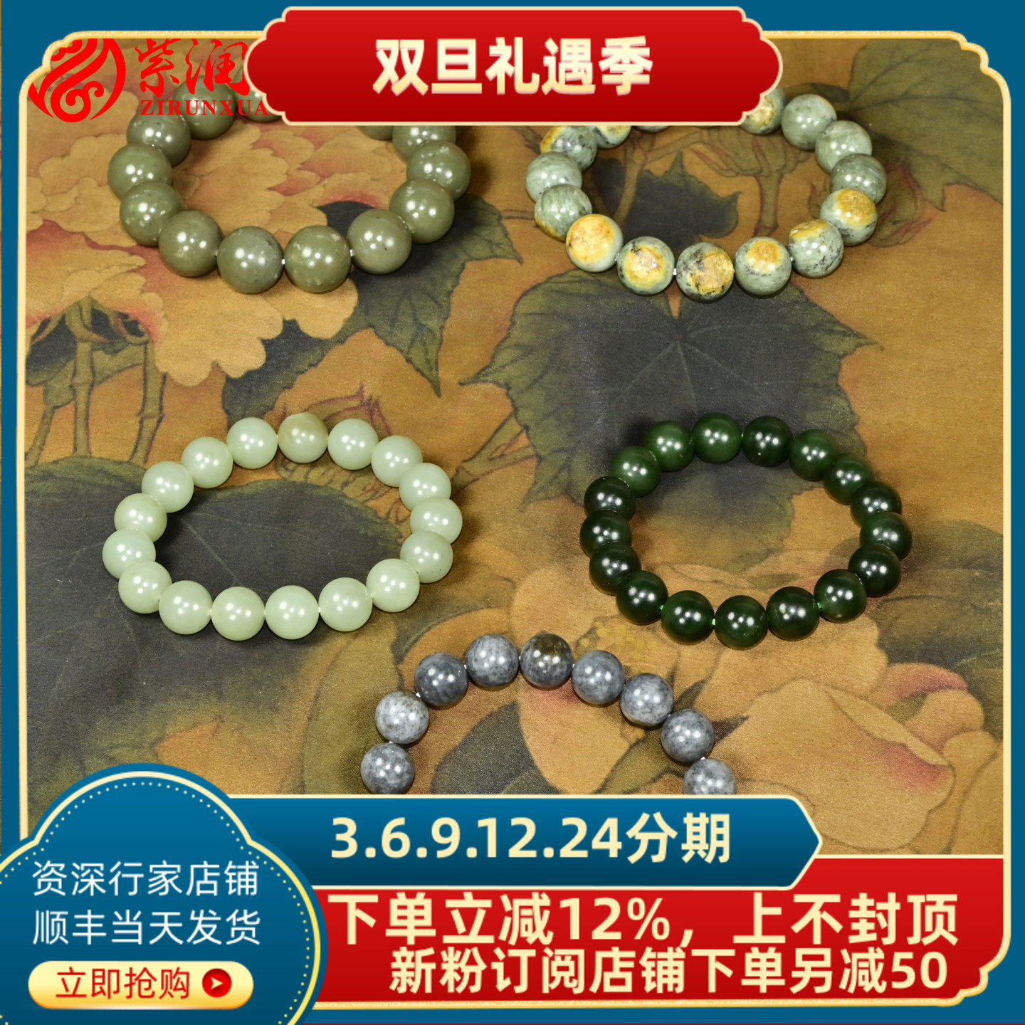 紫润轩新疆和田玉籽料手链青花青白碧玉黄沁皮洒金皮手串一物一拍