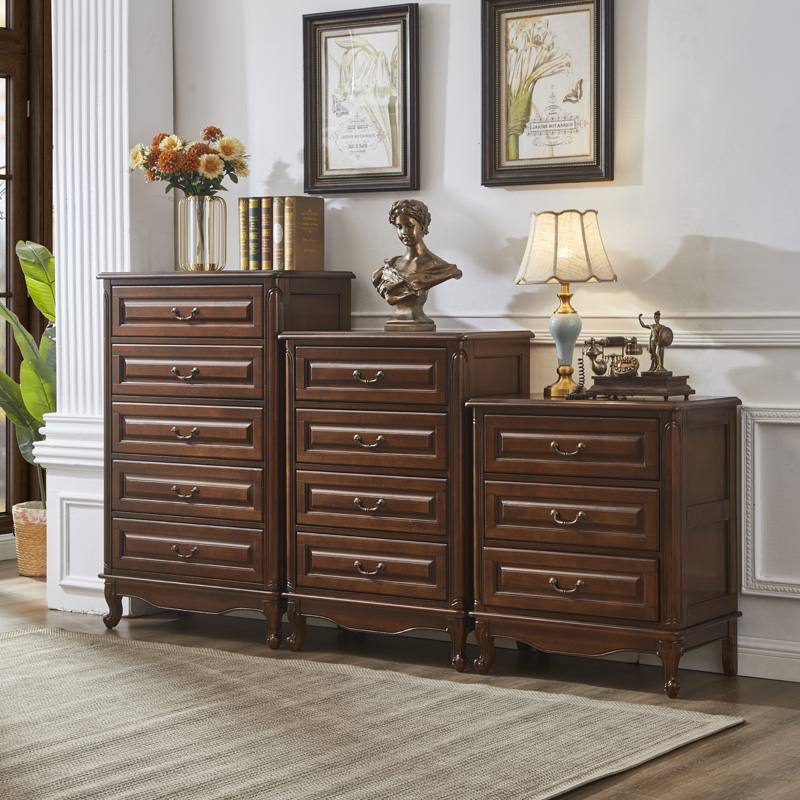 美式实木五斗柜 简约欧式卧室储物小抽屉柜收纳柜复古五斗橱靠墙