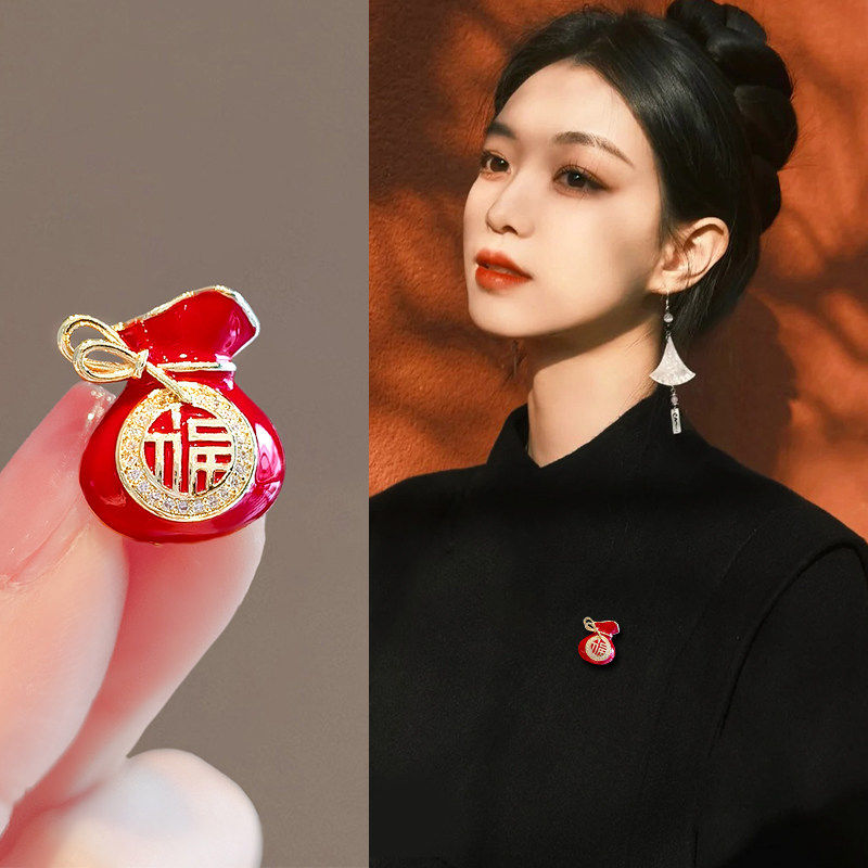 国风喜庆红色胸针男女精致复古高档新年服装配饰别针婚庆礼服胸花