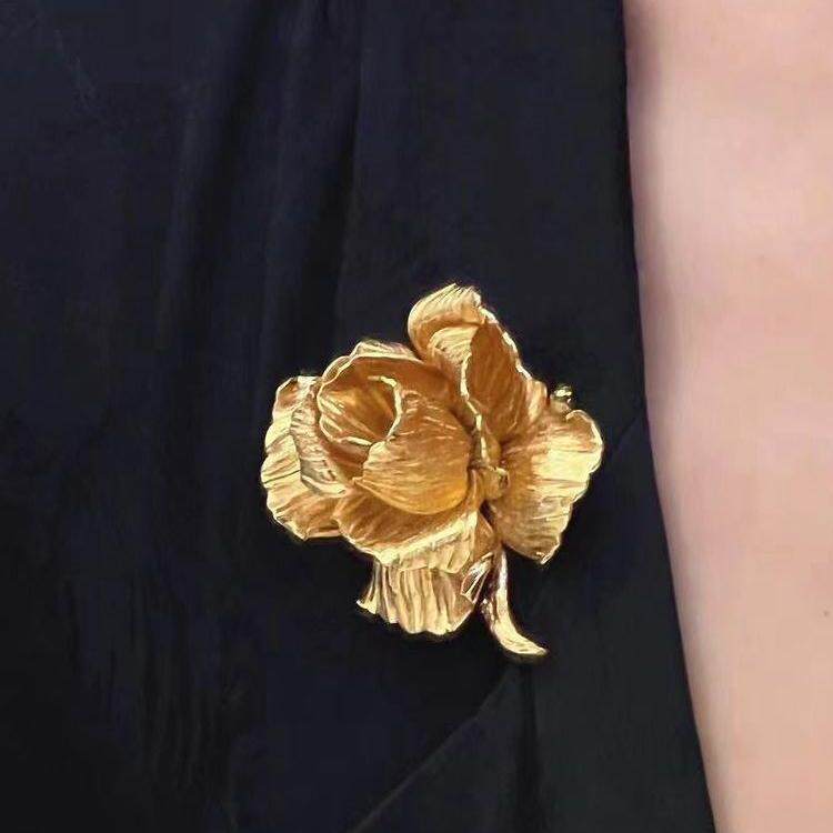 手工胸针女款复古vintage金色立体玫瑰花高级感花朵胸花大衣配饰