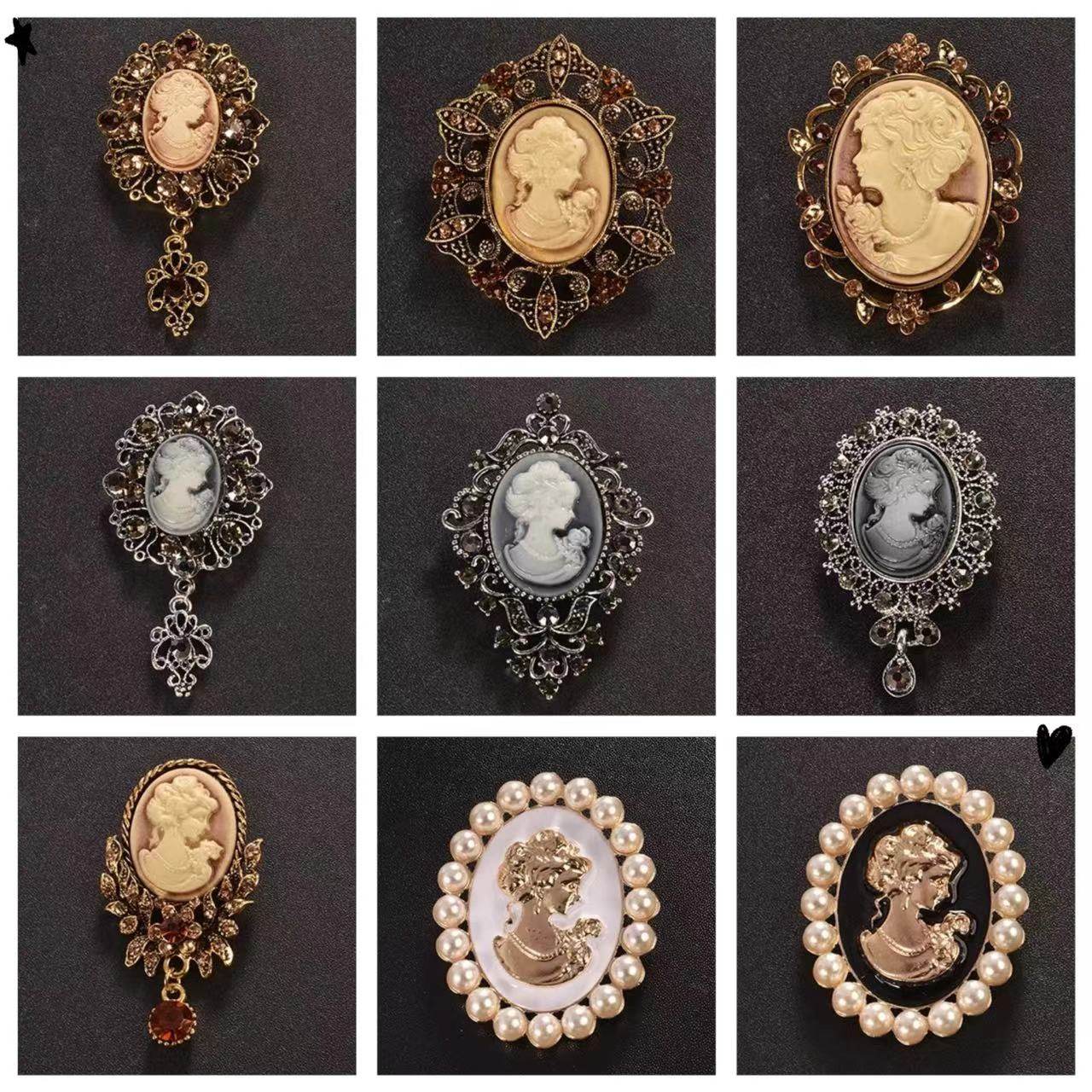 复古宫廷胸针女胸花女防走光欧美时尚美人头像风衣徽章别针领针扣