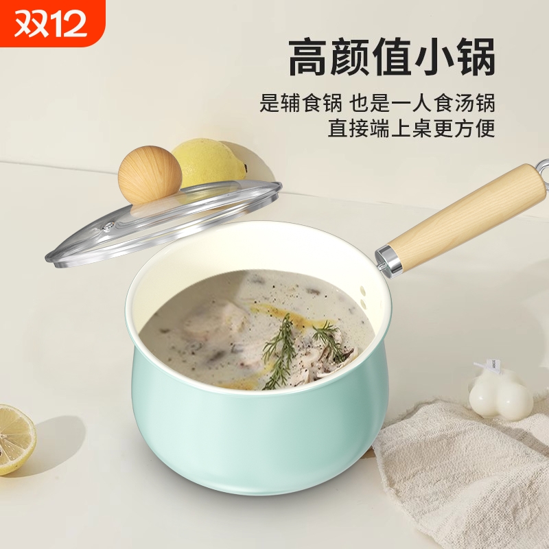 炊大皇奶锅不粘锅婴儿宝宝辅食锅小奶锅一人食钛锅汤锅家用煮面锅