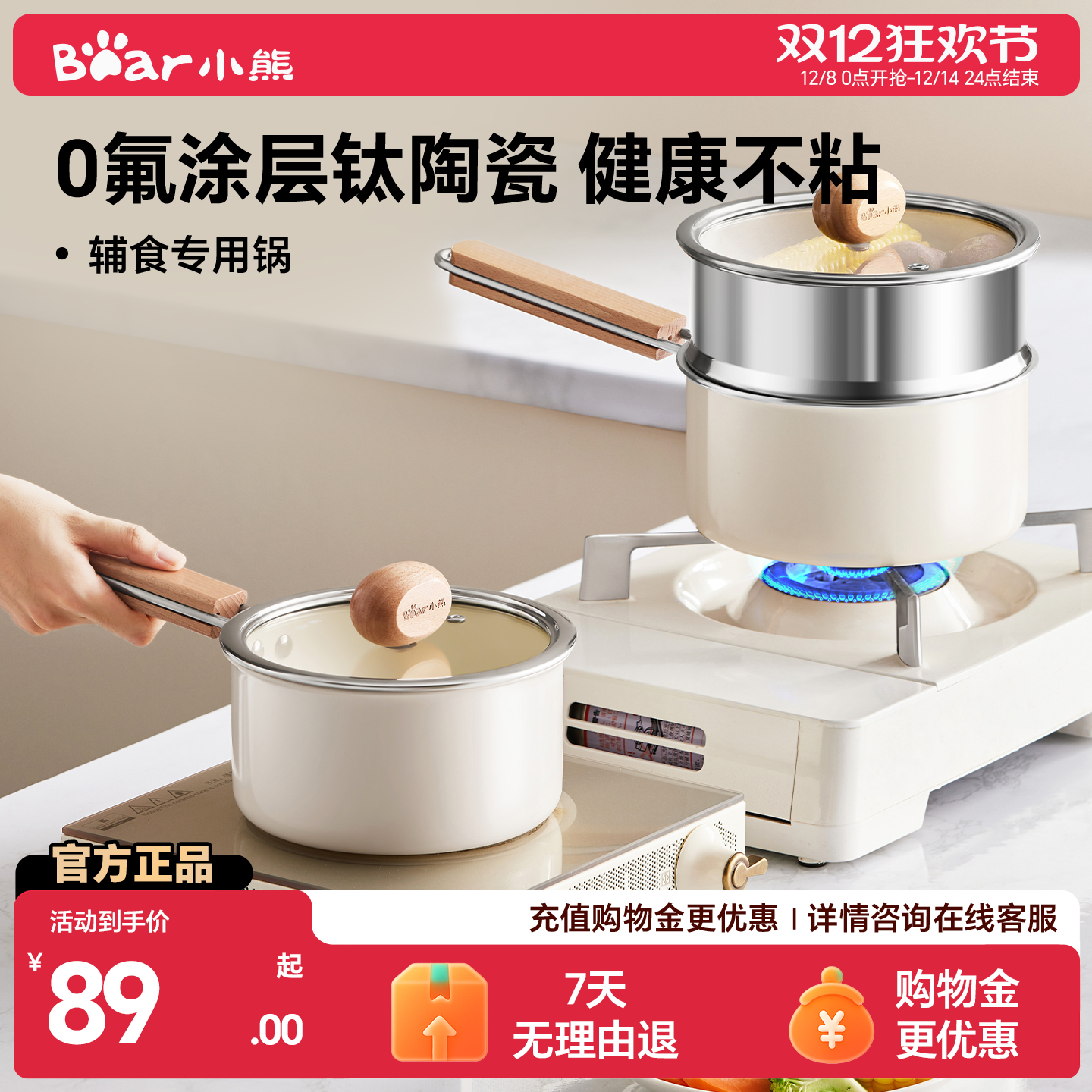小熊钛陶瓷小奶锅婴儿宝宝辅食锅一人食不粘锅煮泡面锅汤蒸锅一体