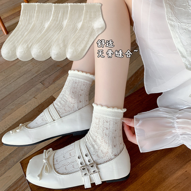 袜子女夏季薄款短袜无骨桑蚕丝中筒袜抗菌网眼透气白色芭蕾风夏天