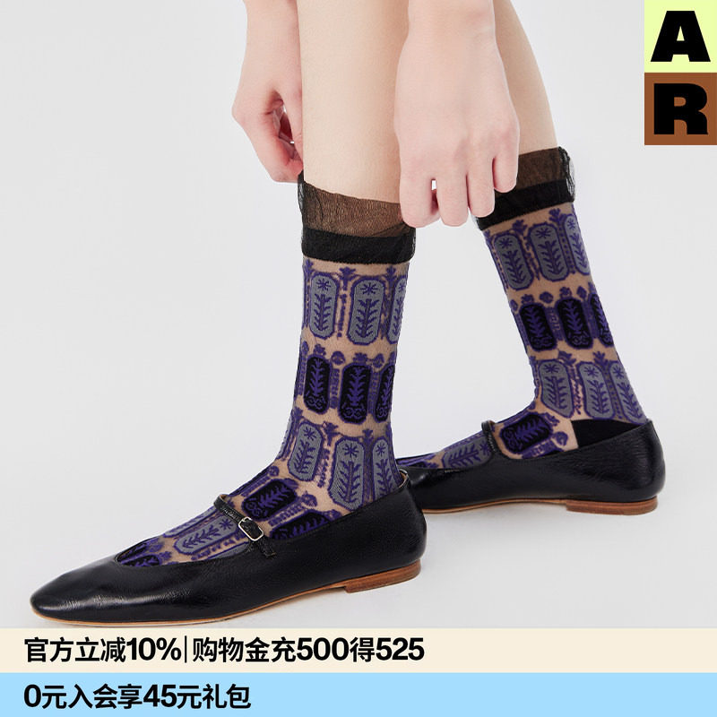AR复古浮雕花边丝袜/轻薄2026新款芭蕾袜子女ins潮a线AlmondRocks