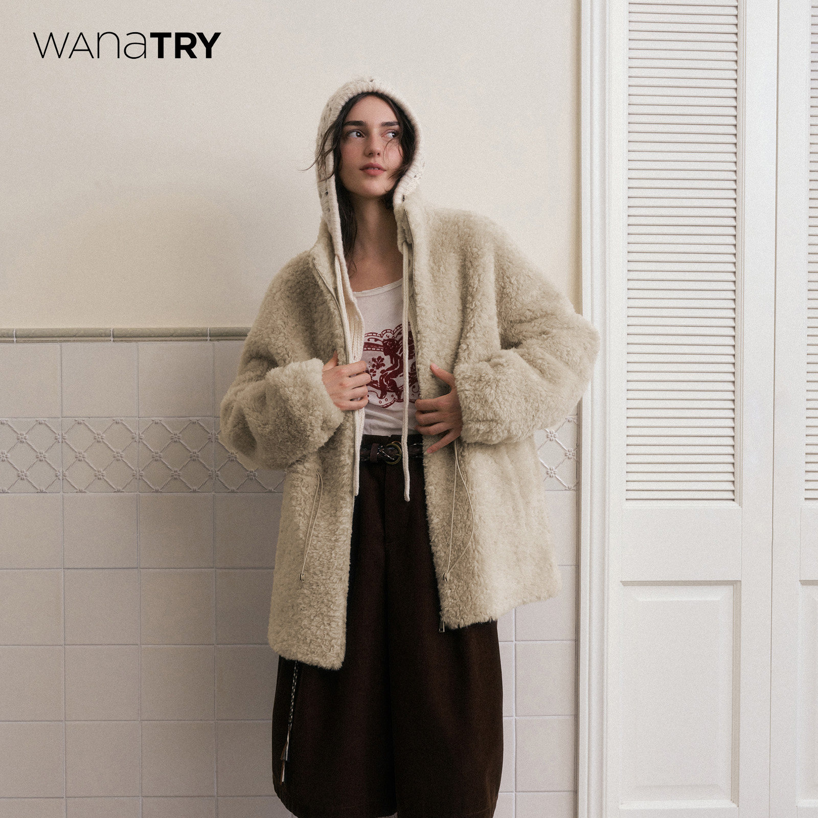 【明星同款】wana try100%绵羊毛复合皮毛一体大衣25新品时髦外套