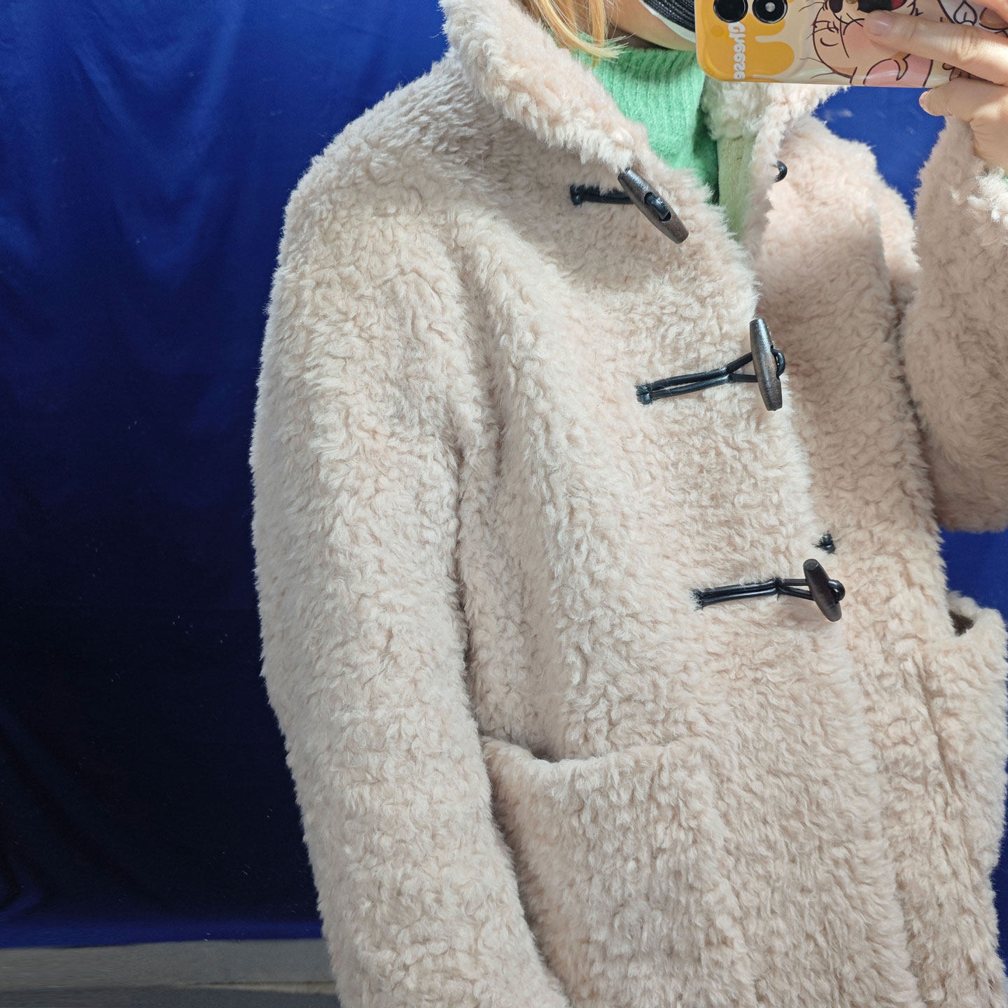 皮毛一体新款!牛角扣全羊毛皮草厚外套大衣 25秋冬新款【鸬鹚】