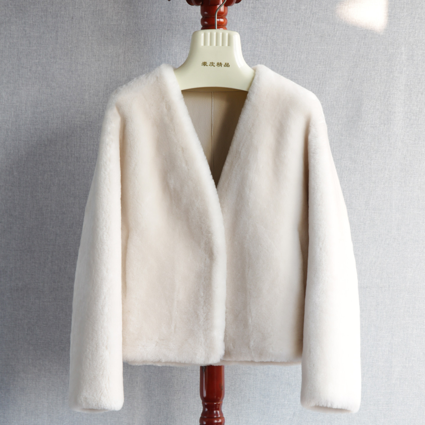 2025年进口澳洲美利奴羊毛皮毛一体皮草外套简约V领短款皮草大衣