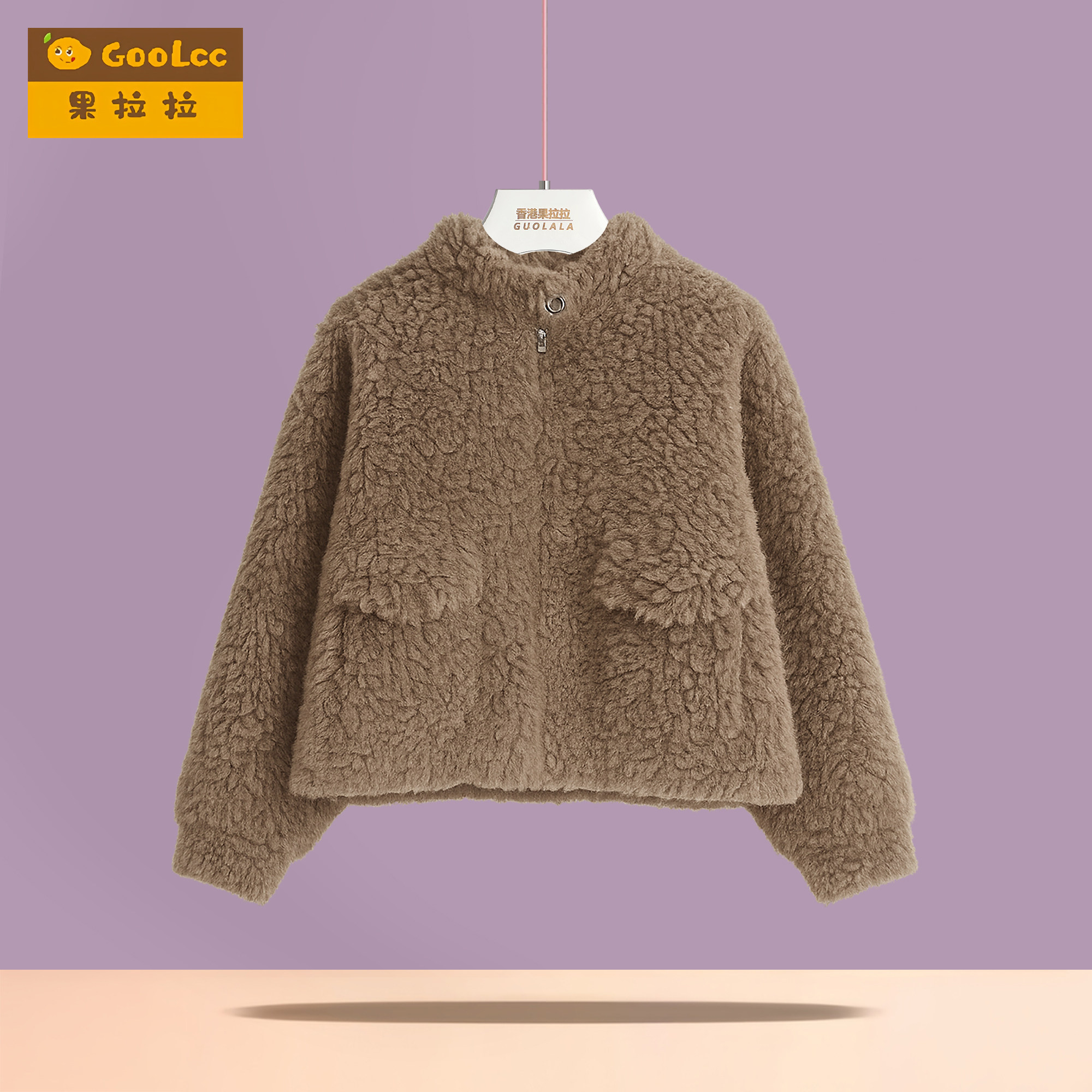 女童冬季外套5%绵羊毛皮毛一体大衣短款休闲宽松儿童加厚保暖皮草