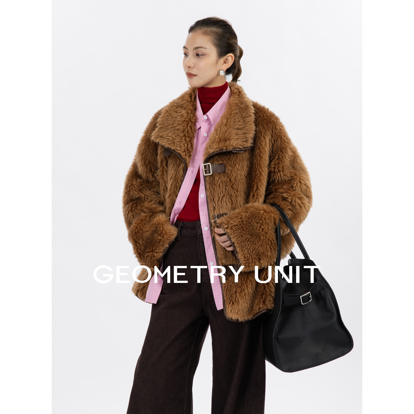 gjhj美拉德皮毛一体圆领外套 羊毛麂皮两面穿宽松短款小个子大衣