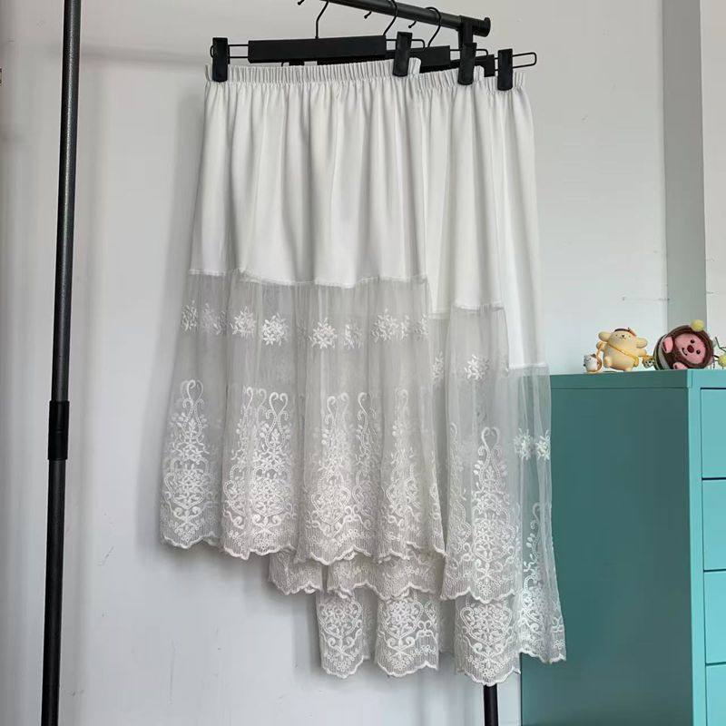 2024秋冬女透视蕾丝半身裙打底裙中长款拼接刺绣内搭裙百搭内衬裙