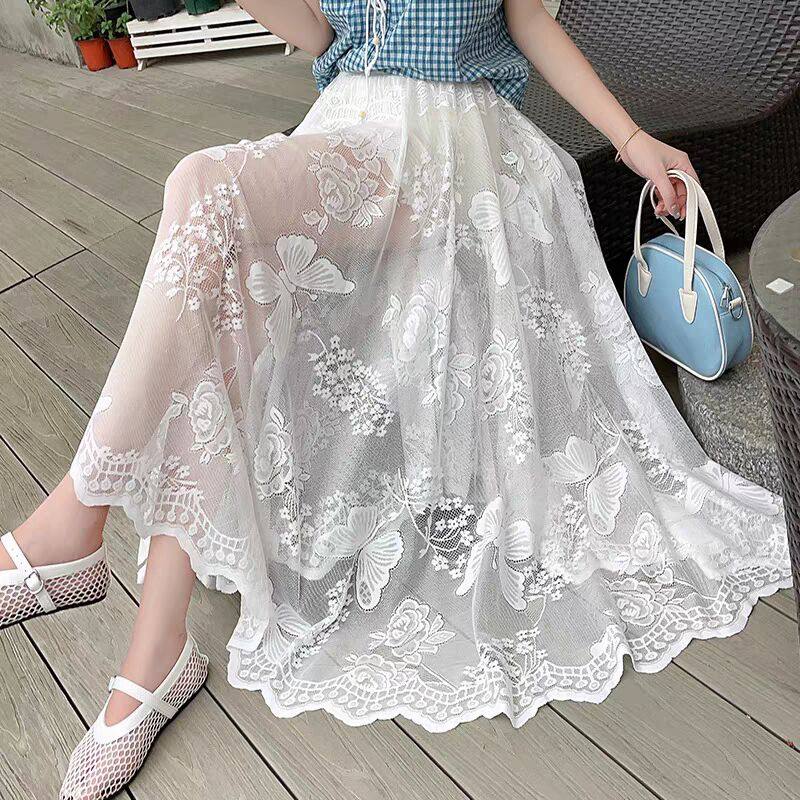 高腰透视长裙蕾丝半身裙网纱中长款显瘦罩裙内搭衬裙单层打底裙女