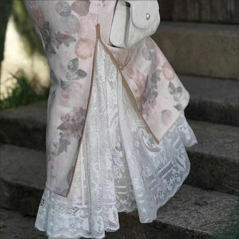 旗袍内衬裙蕾丝夏季下半身裙长款内搭防走光打底汉服叠穿国风裙子