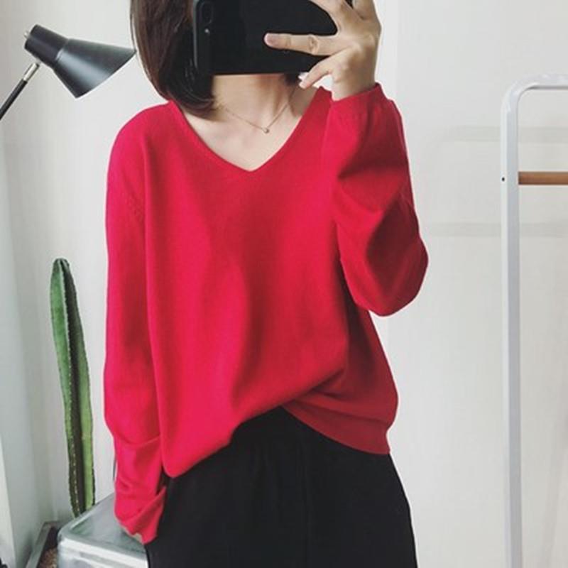2025秋冬季新款韩版宽松V领套头长袖针织衫女装打底衫学生毛衣女