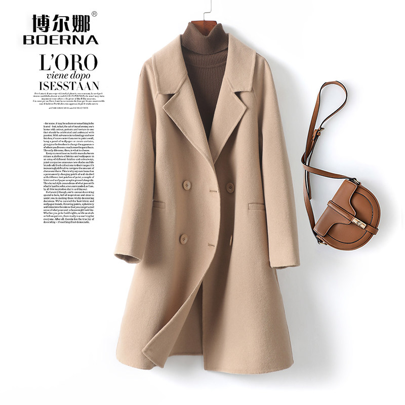 双面羊毛大衣女中长双排扣驼色初剪羊毛呢子冬秋新款高端毛呢外套