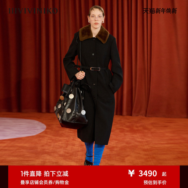 【秀场同款 初剪羊毛】IIIVIVINIKO冬新款毛呢长大衣外套女