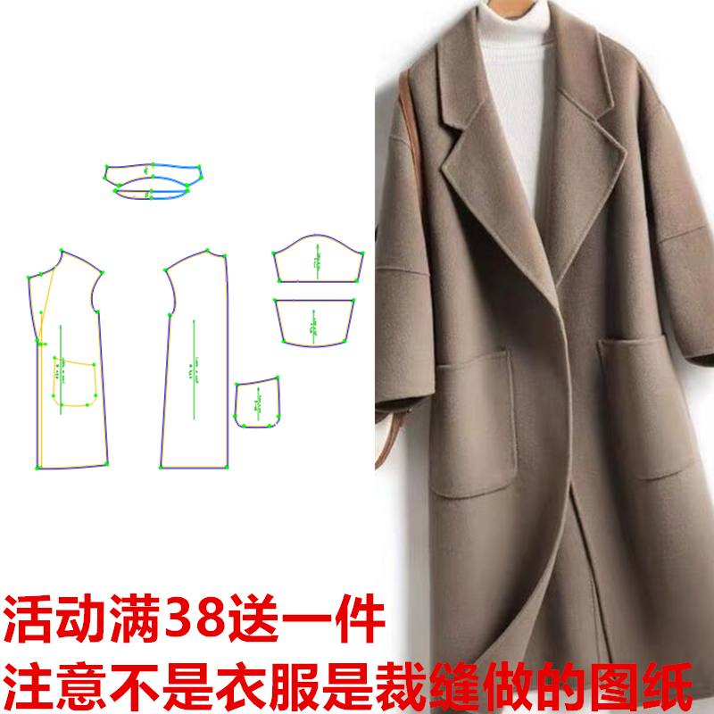 服装纸样春670秋新款羊毛呢子女士大衣双面毛呢裁剪图纸衣服样板