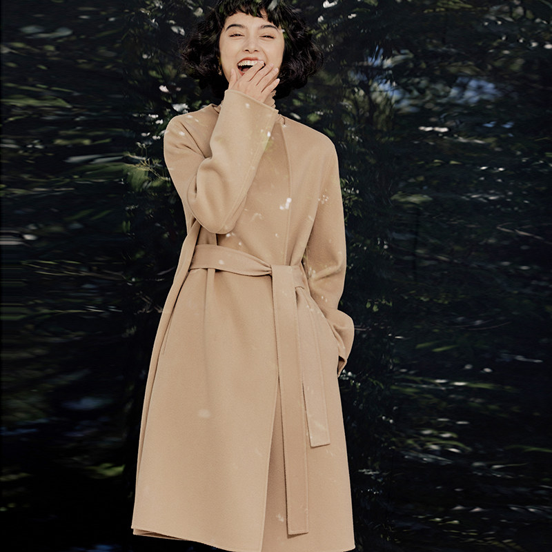WDY06001 GI*@DA意大利空运初剪羊毛羊绒双面呢系带长款秋冬大衣