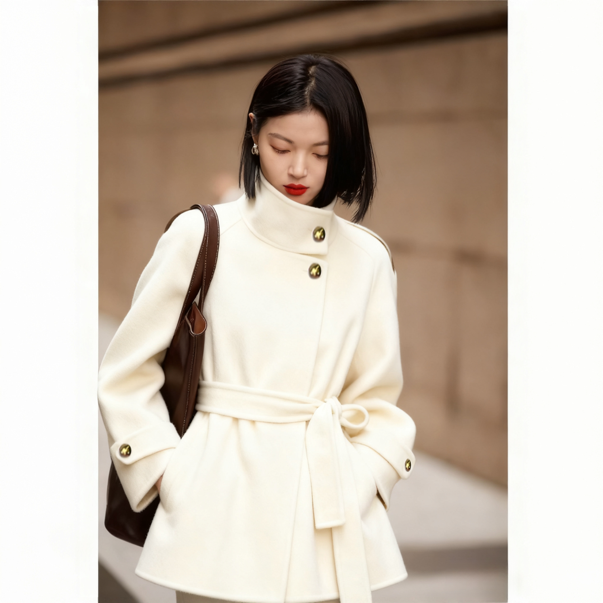 100初剪羊毛双面呢大衣女25新款立领短款显瘦显腿长羊毛呢外套