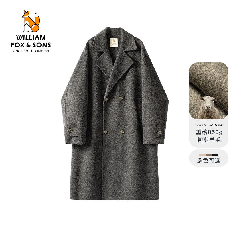 英国小狐狸2025秋冬重磅850G初剪羊毛双面呢大衣男女同款长绒外套