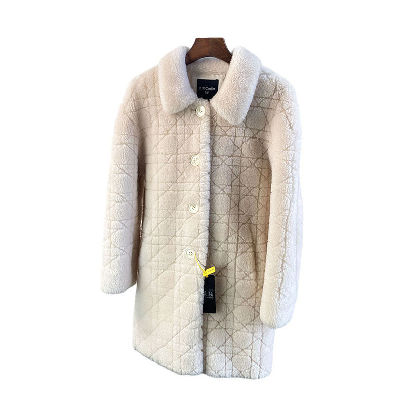 100%羊毛羊剪绒皮草外套中长款剪花女装修身大衣海宁 翻领特价清