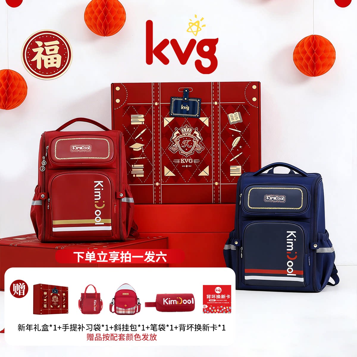 KVG儿童书包男女孩1-6小学初中生减负护脊大容量礼盒包装双肩背包