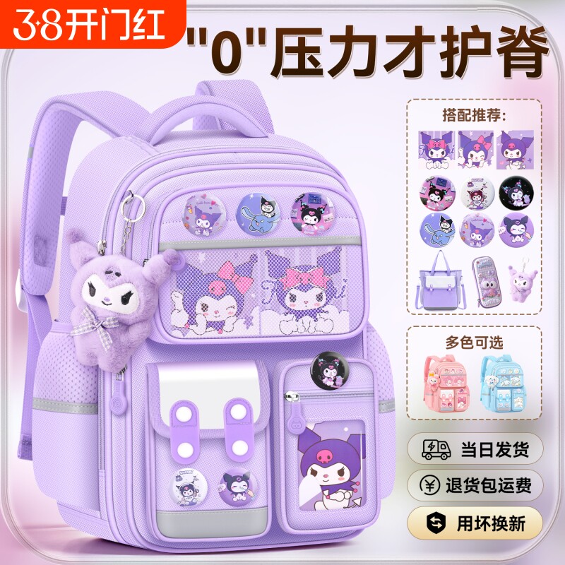 小学生书包女生女孩一二三六年级新款减负护脊儿童双肩包卡通高颜值库洛米双肩背包男童女童背包大容量6年级