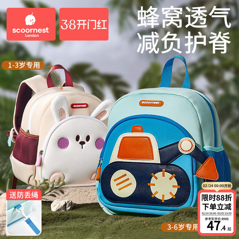 贝肽斯幼儿园书包儿童入学用男童女孩外出小背包宝宝2岁3双肩护脊