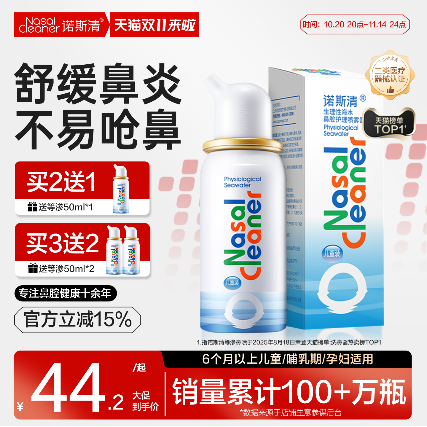 诺斯清生理性海盐水鼻喷洗鼻器喷雾剂鼻腔清洗液冲洗鼻炎鼻塞儿童
