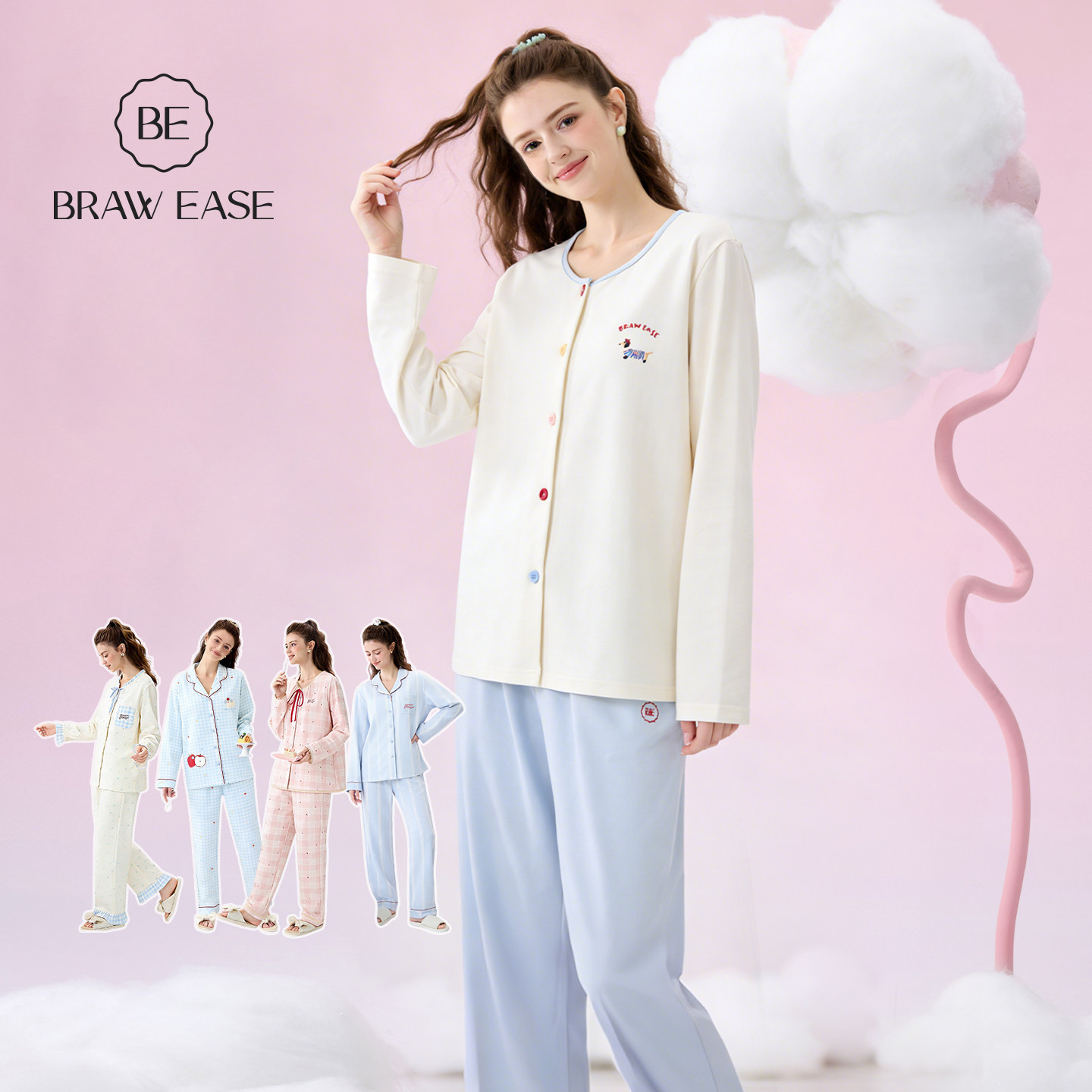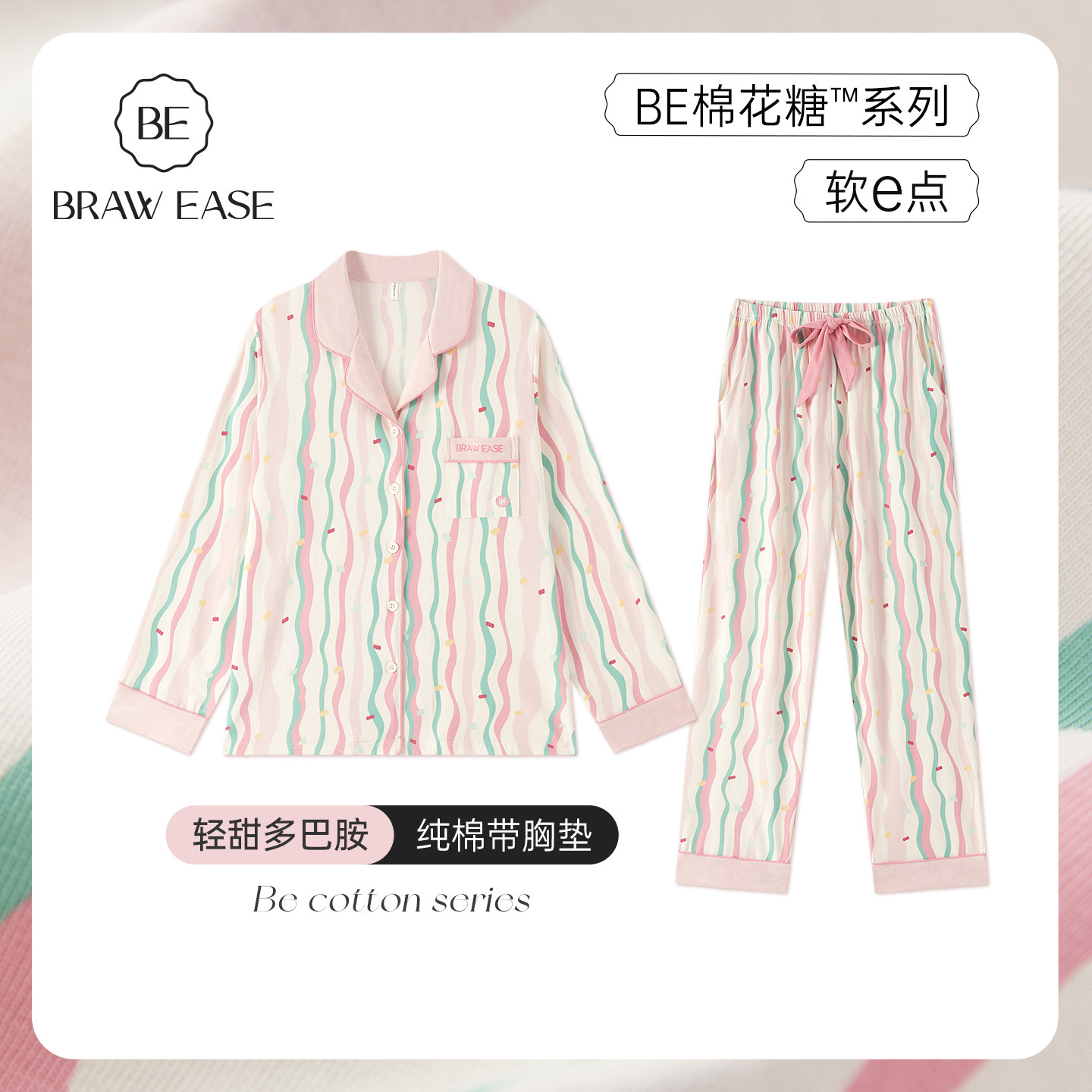 BE纯棉睡衣女款夏女士秋春带胸垫家居服套装长袖长裤2026新款夏季