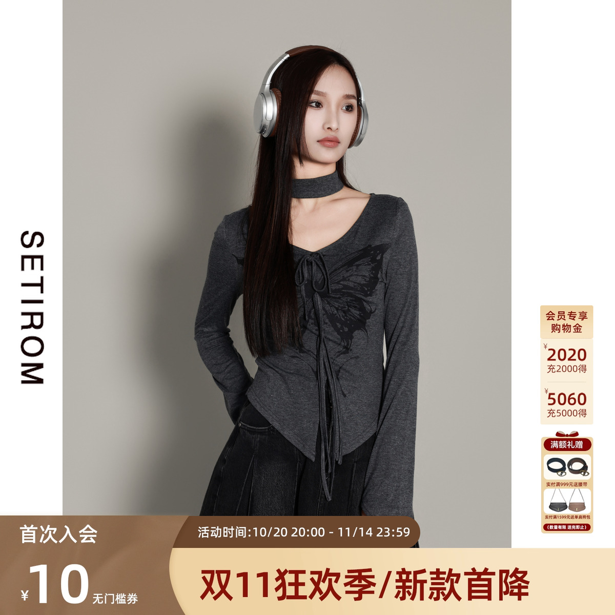 西町村屋美式废土蝴蝶小衫女春季新款气质长袖低领上衣XAAA10040