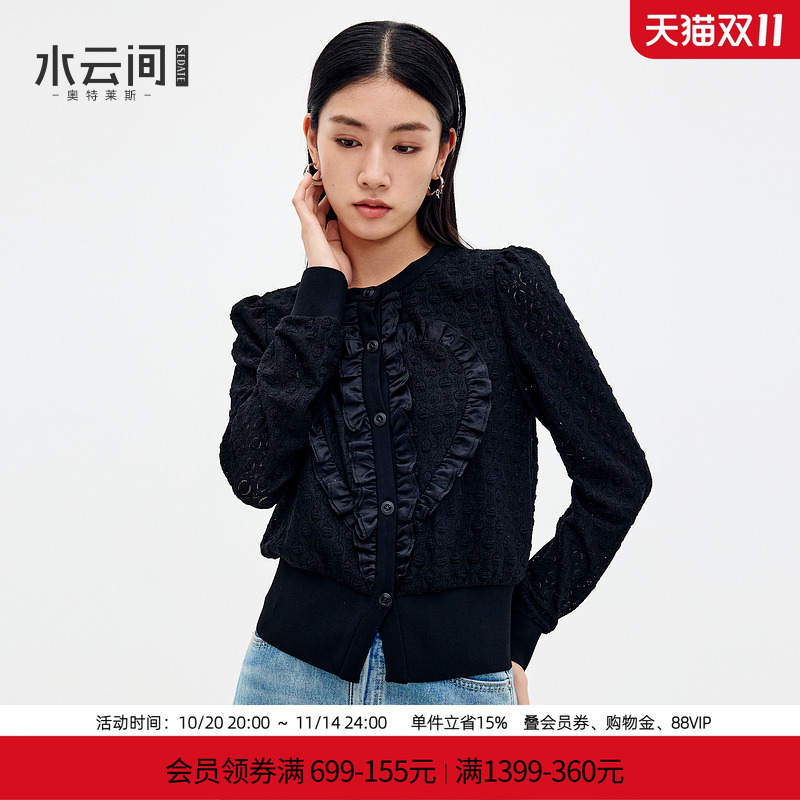 水云间黑色短外套长袖开衫女上衣通勤减龄显瘦薄小衫2025春季新款