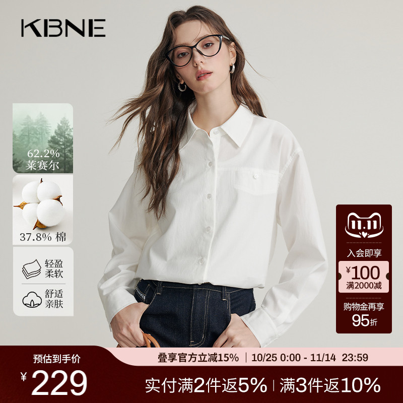 KBNE莱赛尔白色衬衫欧若智性风春季新款气质衬衣时尚洋气小衫女装