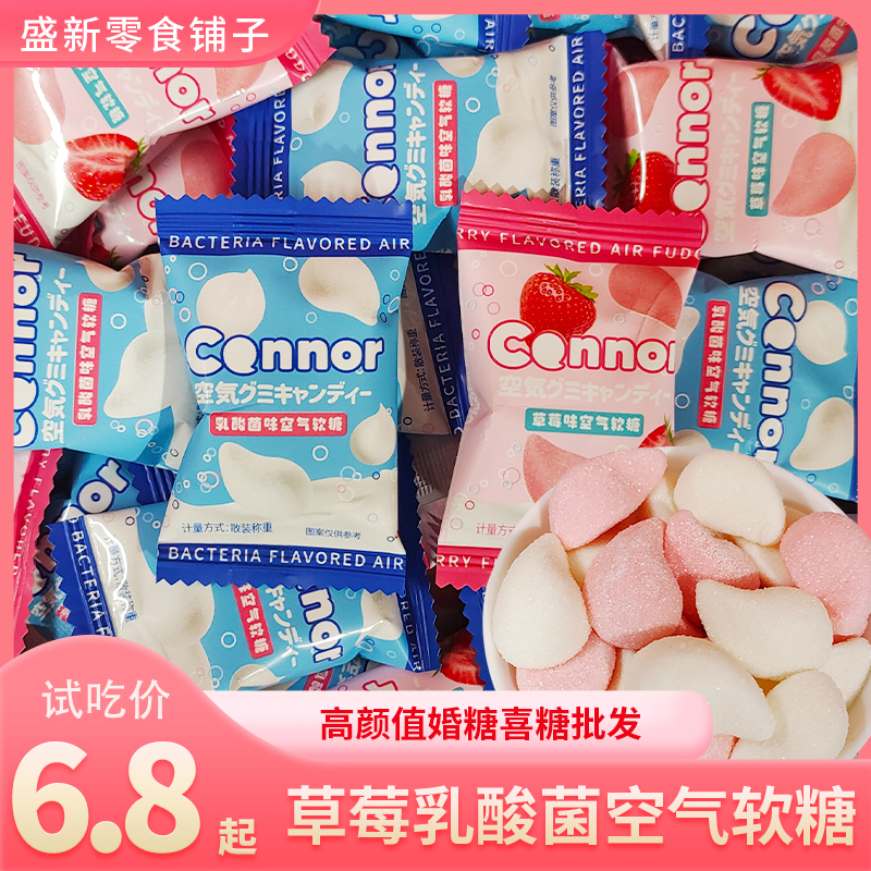唯口爱空气感软糖乳酸菌草莓味儿童休闲零食散装糖果批发结婚喜糖