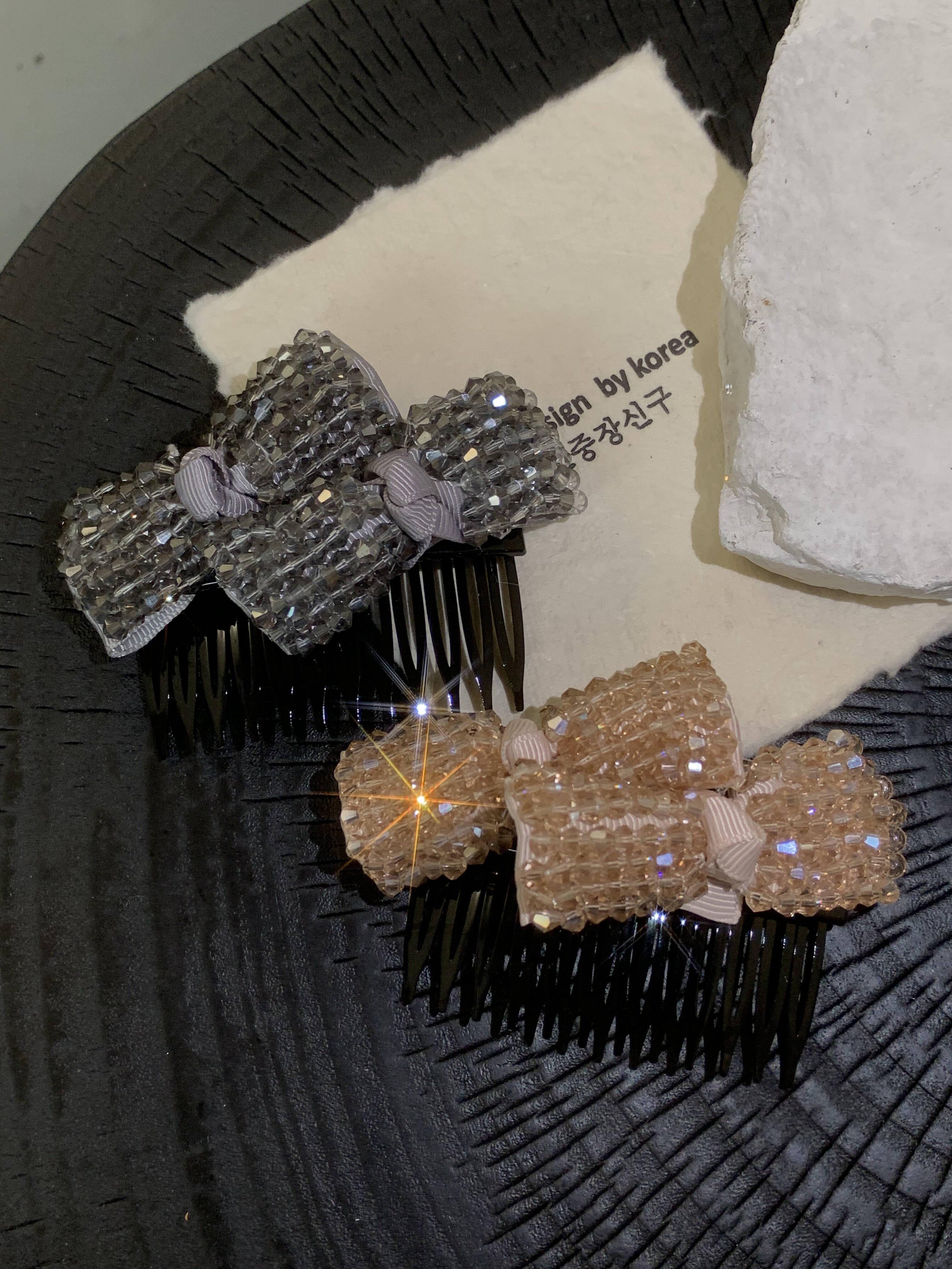 韩国时尚水晶串珠发梳丝绒蝴蝶结刘海夹碎发整理发卡倒插梳发饰女