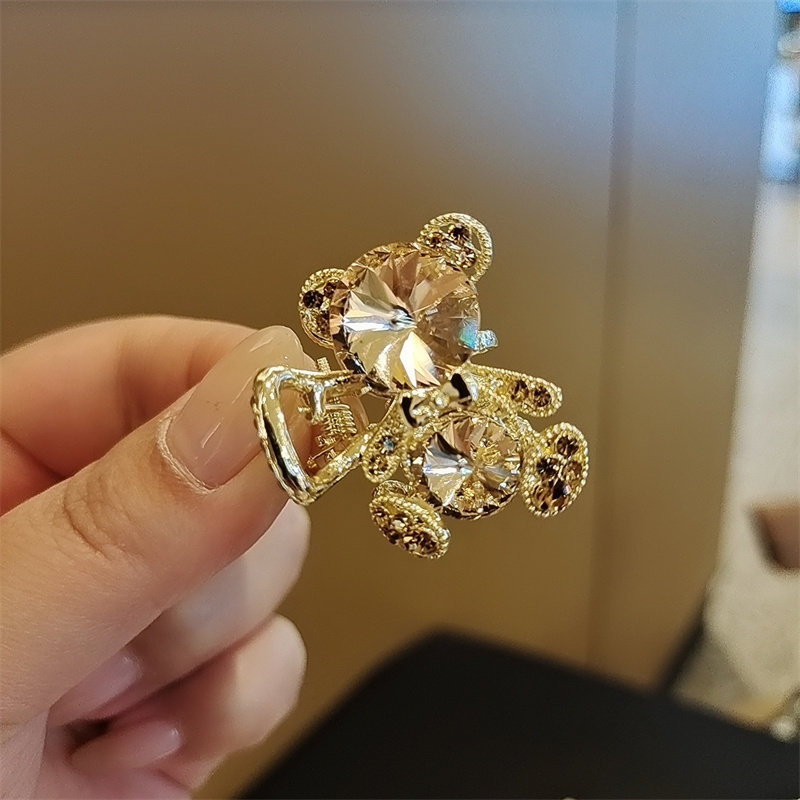 水晶小熊发夹女迷你小号抓夹可爱卡通韩国发饰镶钻发抓刘海夹顶夹
