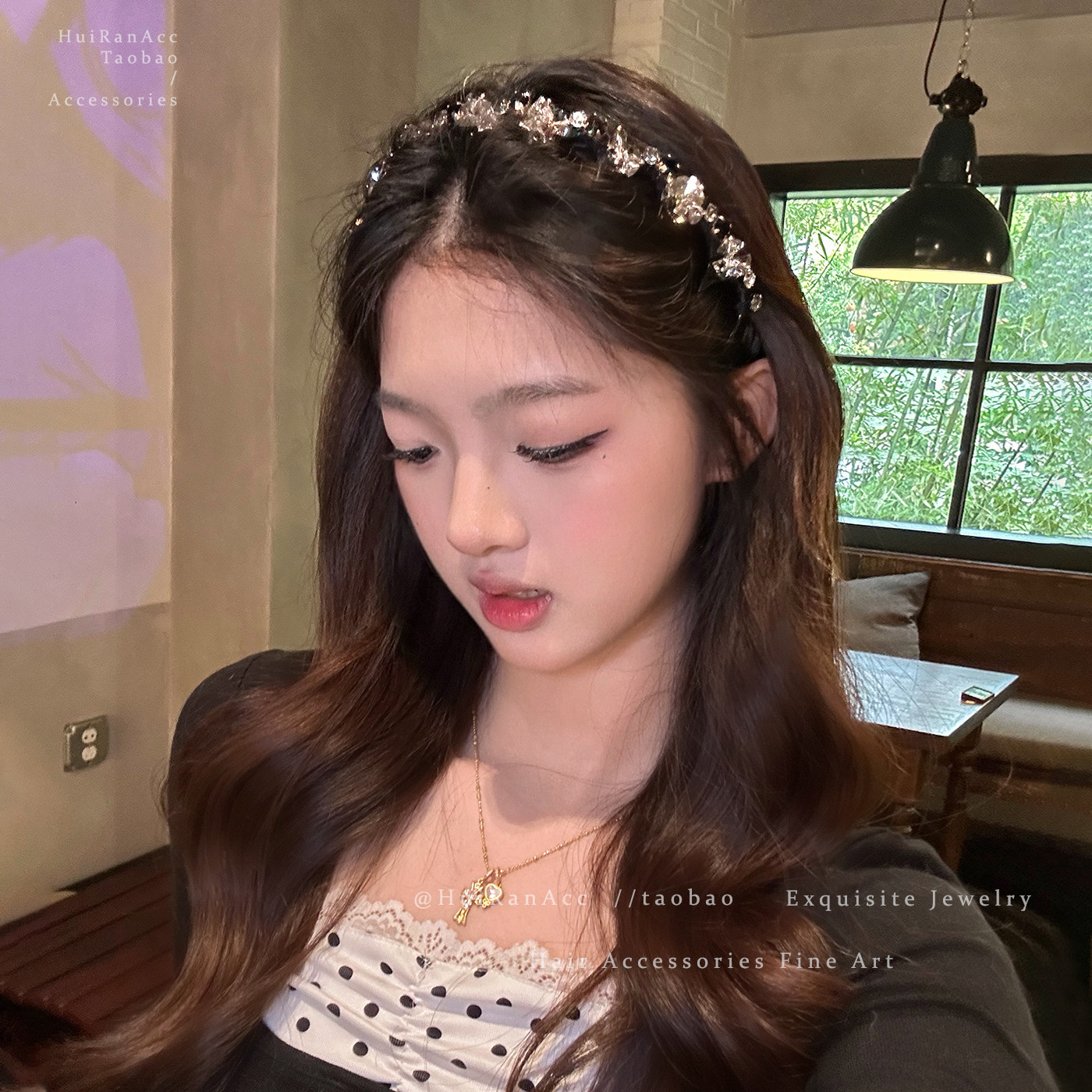 韩国baket发饰精致高级感水晶水钻串珠子簇发箍轻奢时尚气质卡齿