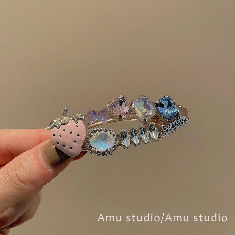 韩国新款甜美草莓水晶发夹女前额碎发BB夹侧边刘海夹边夹发卡头饰