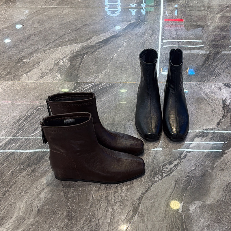 欧美风~软底加绒瘦瘦靴女2025冬新款气质小方头轻便软底短筒棉靴