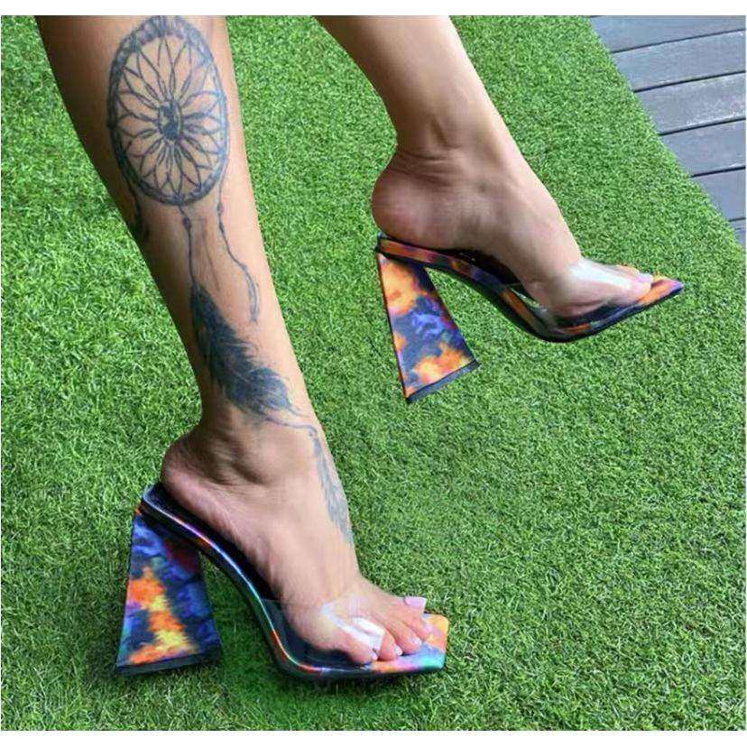 women shoes季新款方头三角形跟粗高跟外穿拖鞋欧美风女鞋422024