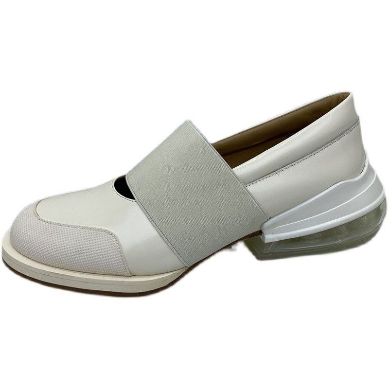 外贸纯原气垫底单鞋松紧带圆头休闲中跟女鞋全真皮舒适欧美风女鞋
