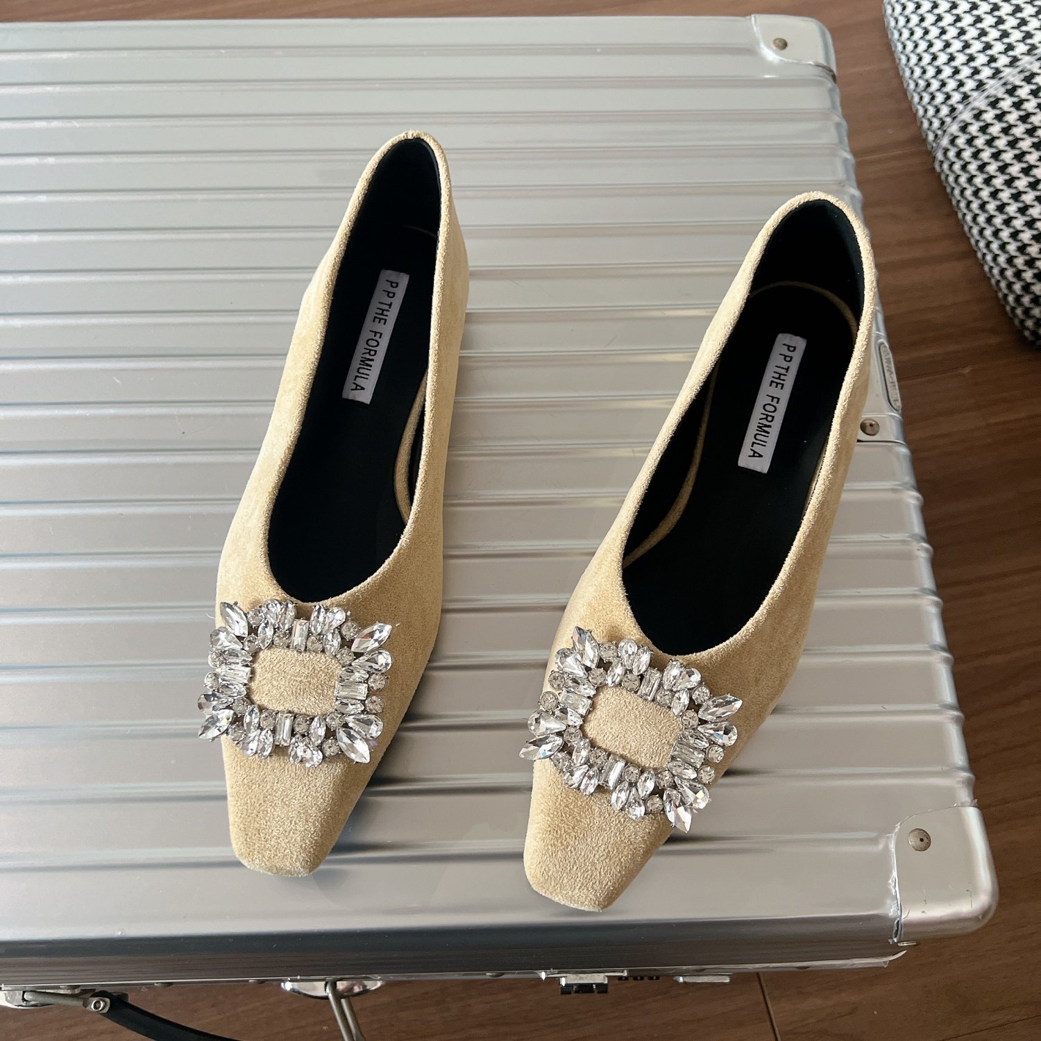 2026春季新款欧美风女鞋水钻方扣单鞋浅口绒面方头通勤鞋低跟鞋女