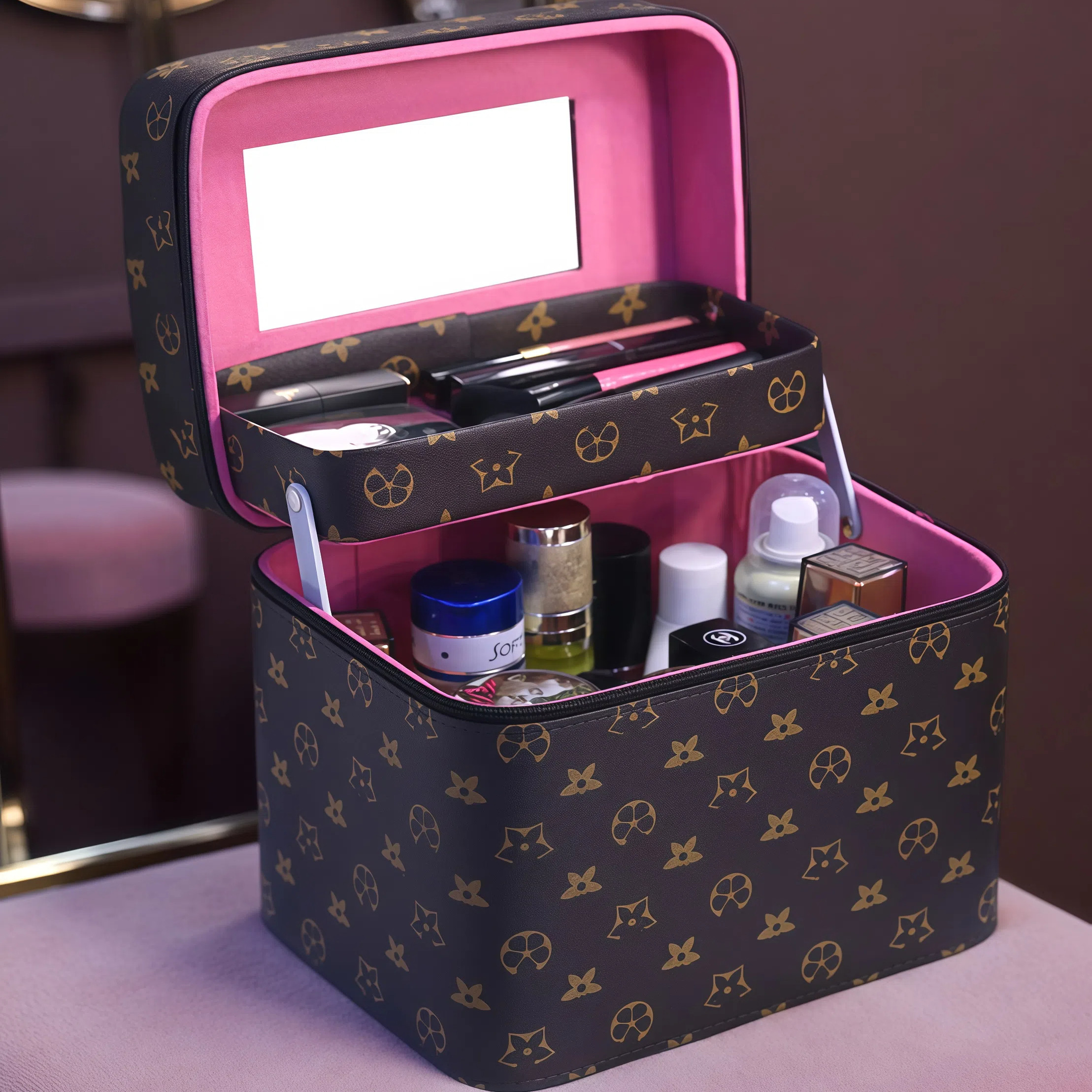 大牌化妆包女小众高端大容量便携式旅行手提化妆箱护肤品盒带镜子