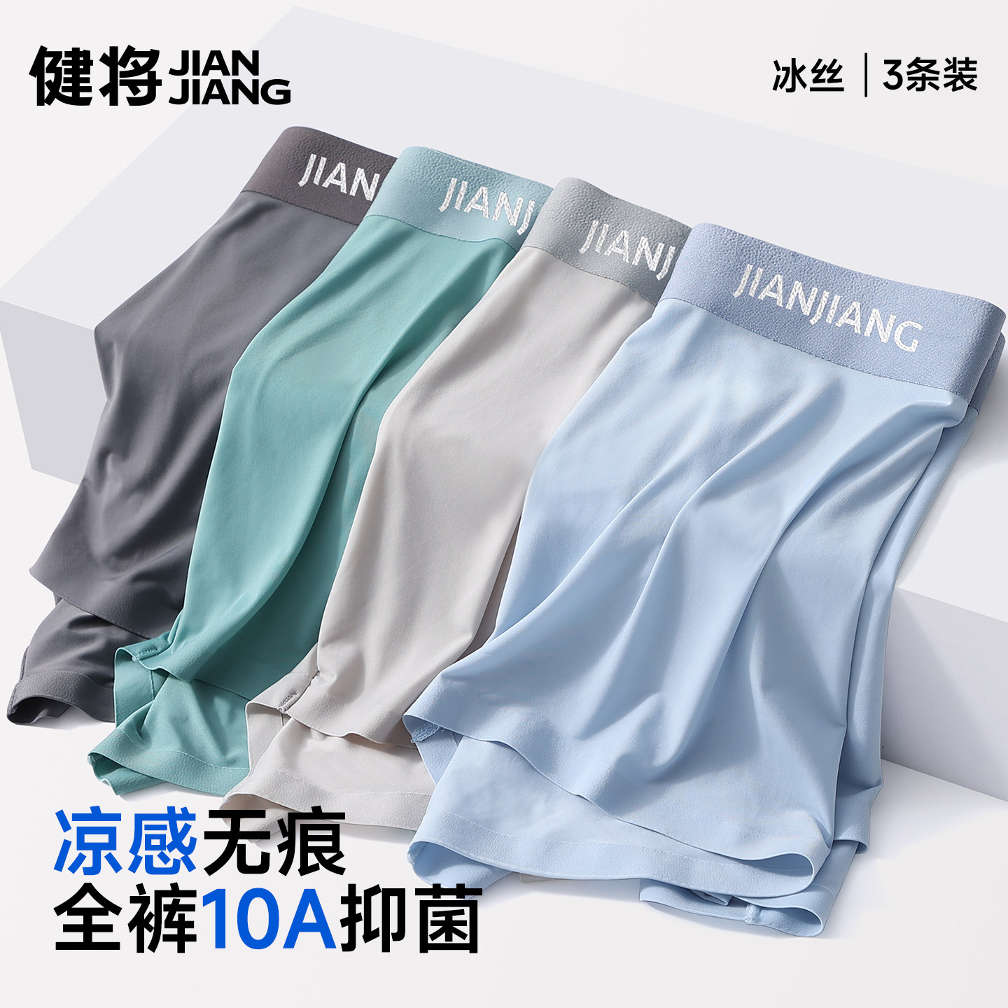 健将冰丝男士内裤四角裤男装抗菌凉感透气莫代尔男生平角短裤男款
