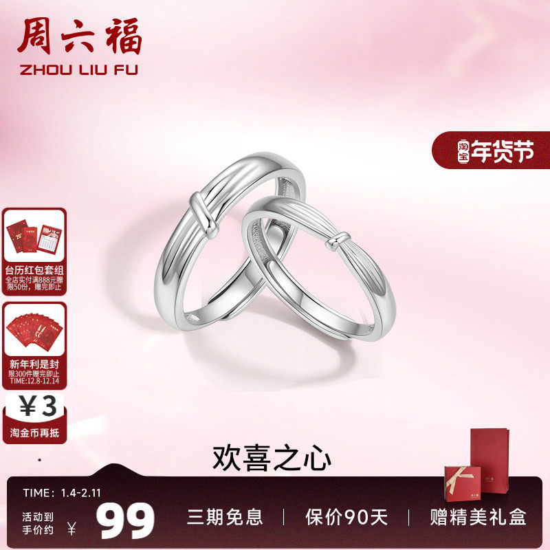 周六福S925纯银情侣对戒简约小众设计感活口男女戒指生日纪念礼物