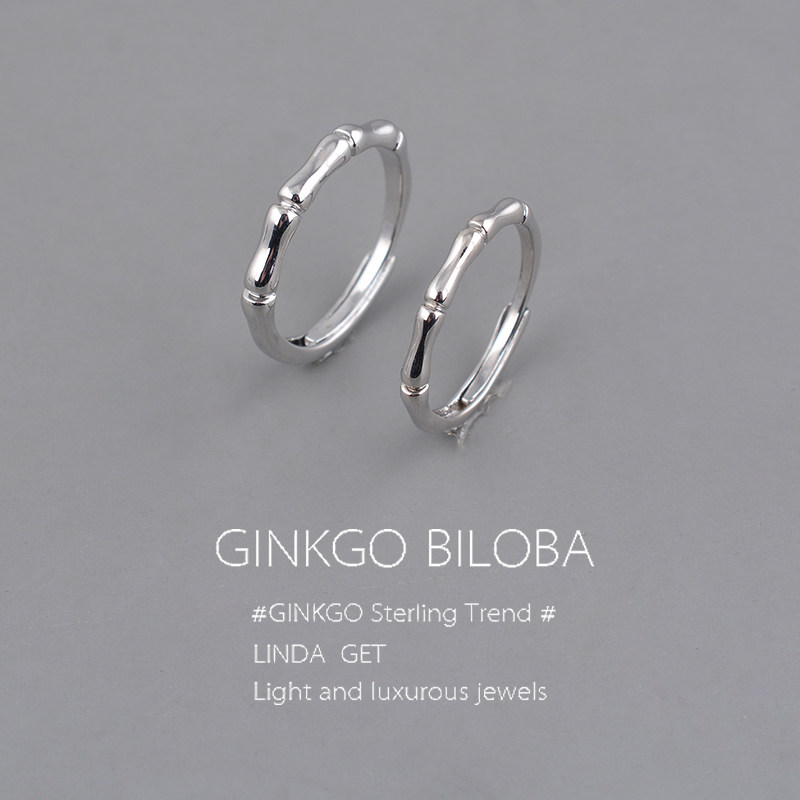 s925清新文艺纯银竹节戒指学生日韩简约对戒食指女尾戒潮品闭口