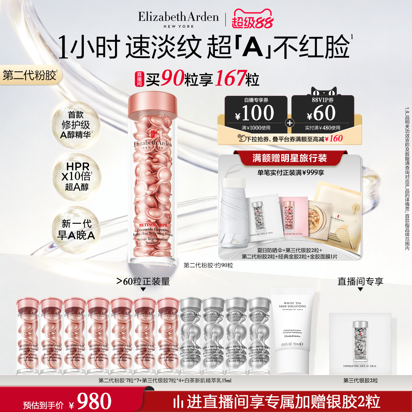 【现货速抢】雅顿第二代粉胶精华淡纹修护 A醇抗皱精华次抛胶囊