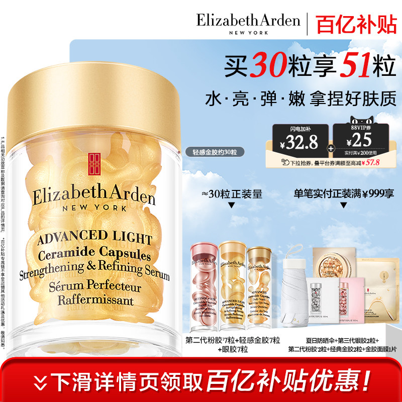 伊丽莎白雅顿金胶精华次抛胶囊30/60/90粒修护面部精华液紧致正品