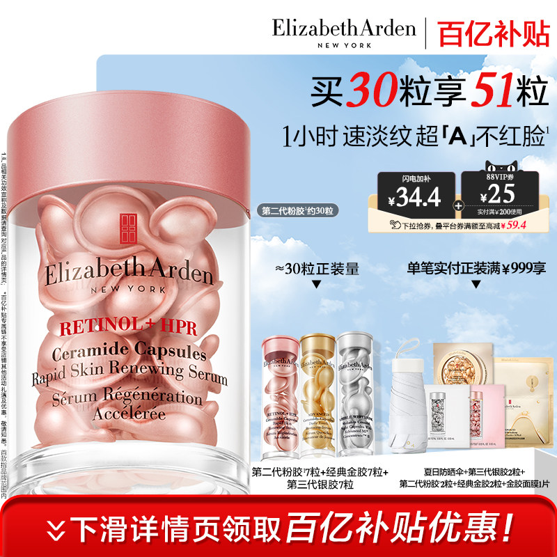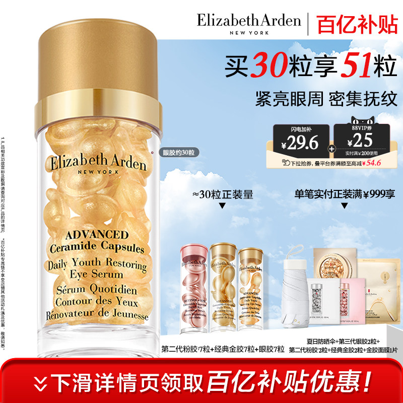 下拉享优惠雅顿二代粉胶胶囊精华液30粒1盒淡纹紧致保湿修护礼物