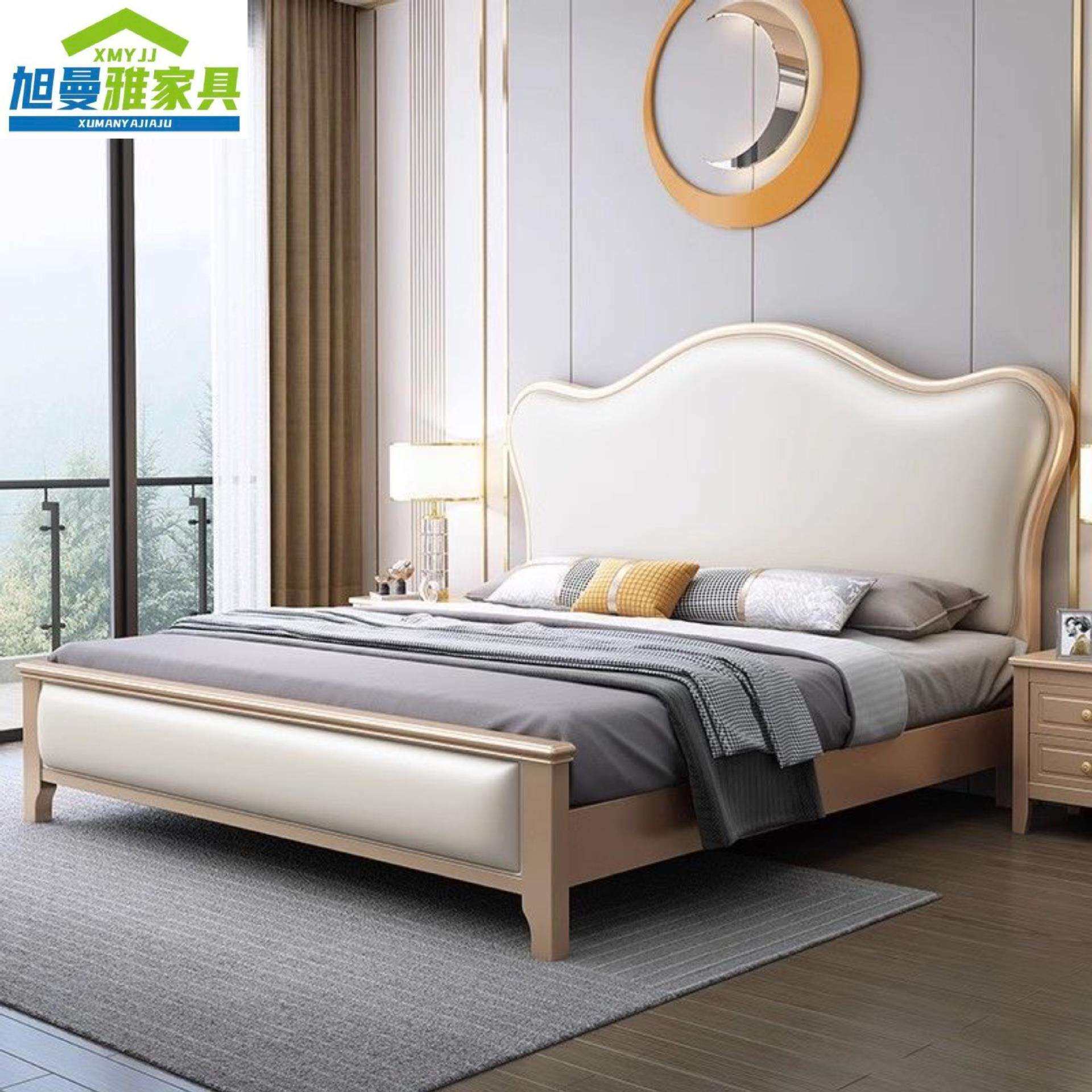 美式实木床1.8米主卧双人床欧式轻奢实木床现代简约软靠1.5米婚床